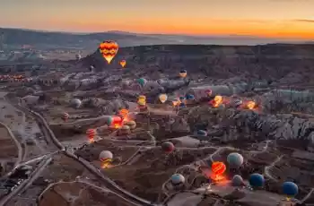 Sabahın ilk ışıltısıyla Kapadokya’nın adını Dünya ya duyuran BALONLARI SEYRETMEK (extra ) için erken saatte otelimizden ayrılıyoruz. Balonların uçuş durumuna göre tan yerinin ağarmasıyla birlikte AŞK VADİSİ (sadece balon seyir için) ne geçip havadaki yüzlerce balonu izlemenin keyfini çıkartıyoruz.